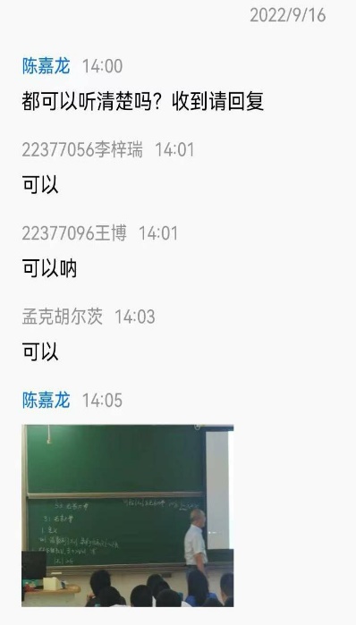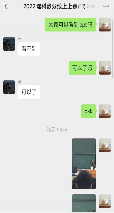 为了保障线上线下同时授课的顺利实现,课程组开展教学需求调研,以充分了解员工线上学习需求。经调研,课程组发现员工对线上授课存在以下两点困惑:一、在教室使用腾讯会议能否保证教学质量(如会议的流畅度、声音的收录效果等);二、线上员工能否看清板书。为解决员工的困惑,课程组针对每位教师的大班另建线上员工群,同时让助教参与教学。为了保证教学效果,课程组对助教进行了系统化培训,带领助教熟悉课堂教学的流程,如开机、电脑联网和使用腾讯会议等。课堂上,助教负责监控线上员工的学习情况,保证线上的每一位员工都能听得清、看得见。同时助教还负责对黑板进行拍照,及时将课堂素材上传给线上员工,尽量做到线上教学与教室授课同步。课后还将录制的视频发到北航云盘,方便员工课后学习复习。