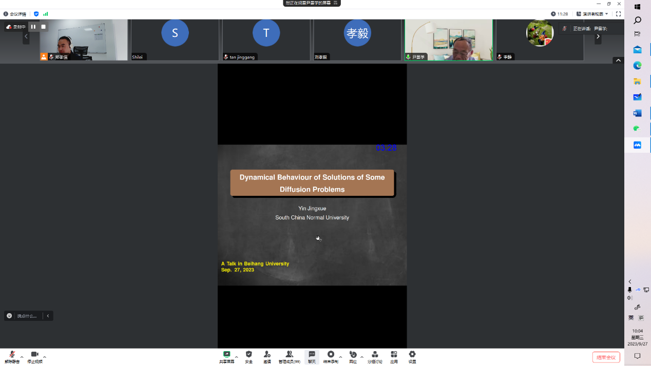 2023年9月27日上午,华南师范大学尹景学教授应邀为best365英国体育在线师生做了题为 “Dynamical Behaviour of Solutions of Some Diffusion Problems”的学术报告。 此次报告由应用数学系郑孝信老师主持,相关研究领域的师生参加了本场报告。