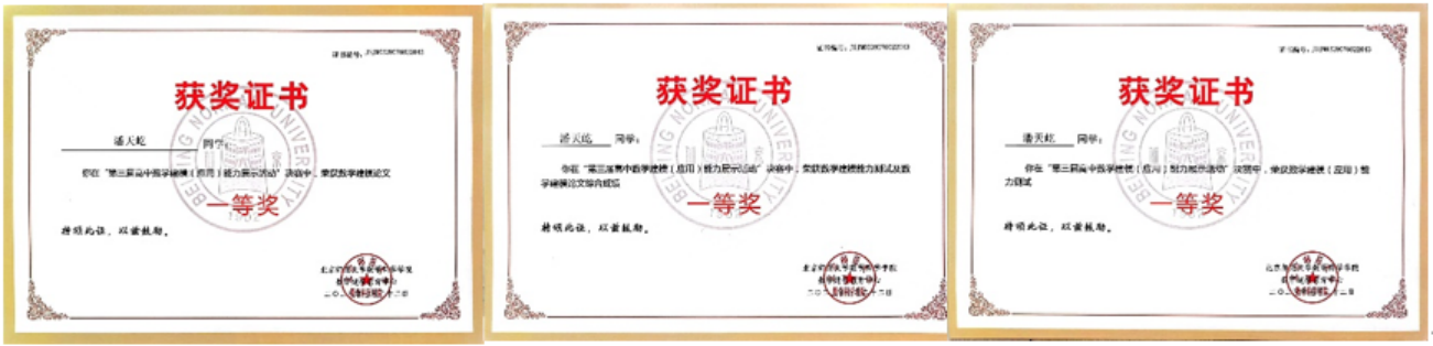 在近日结束的第三届高中数学建模(应用)能力展示活动中,best365英国体育在线依托“英才计划”,由经理韩德仁教授牵头,指导北京市陈经纶中学员工潘天屹完成作品“智能机器人停车泊位最优路径的研究分析”,斩获数学建模(应用)能力测试一等奖、数学建模论文一等奖和综合成绩一等奖。