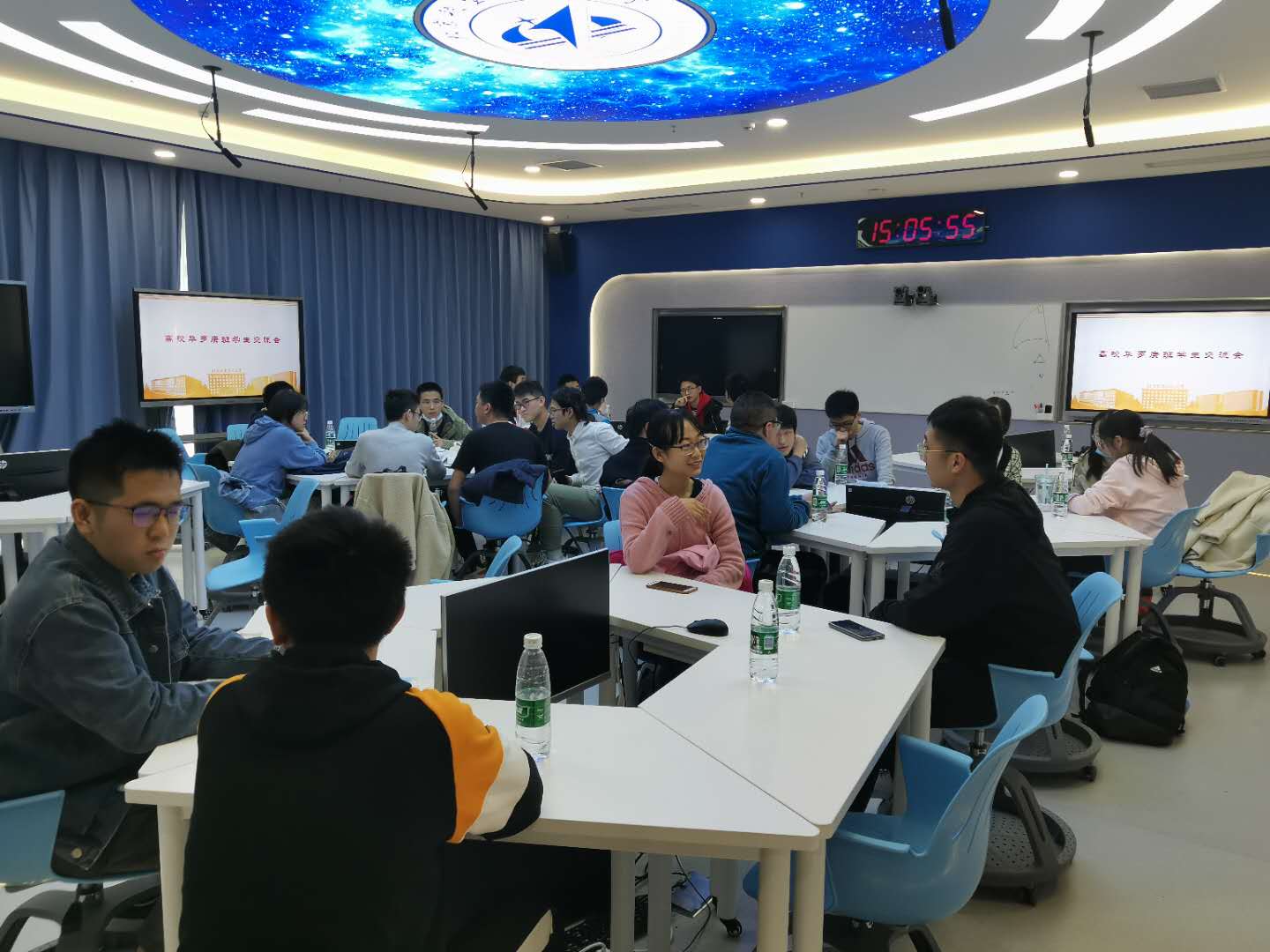 2020年10月29日下午,全国高校华罗庚班员工代表交流会在沙河校区主楼E405智慧教室举行。12名来自中国科公司大学、中国科学技术大学、大连理工大学及山东大学的华罗庚班员工做客数学公司,与公司华班同学共同畅聊数学学习等话题。