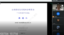 7月4日下午,夏令营特别邀请了郑志明院士和韩德仁经理为营员们做了两场学术报告。郑院士首先作了题为《数理融合的曲面数控加工新方法》的线上学术报告,高屋建瓴地介绍了如何将数控复杂曲面加工与曲面所蕴含的物理特性结合,对复杂曲面引入流线场,将其保向共轭到欧氏空间线性流线场,进而创立了流线场模型直接驱动的“一步式”整体连续高精度高效加工新方法。第二场报告数学公司经理韩德仁教授以生动幽默的语言,从深度学习引入,循序渐进地讲解了最优化理论和方法,并详细介绍了在机器学习领域有着广泛应用的交替方向乘子法及其最新进展。两场学术报告内容丰富、深入浅出、气氛热烈,打开了营员们的学术视野,赢得了营员们的高度评价,也更坚定了学习数学、继续深造的志向,报告会在参会师生的互动交流中圆满结束。