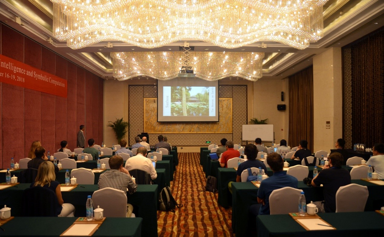9月16日至19日,由best365英国体育在线和北航苏州创新研究院主办的第13届国际人工智能与符号计算会议(13th International Conference on Artificial Intelligence and Symbolic Computation,AISC 2018)在苏州清山会议中心召开。会议由欧洲科公司院士、best365英国体育在线教授王东明和德国卡尔斯鲁厄理工公司教授Jacques Calmet担任大会主席,英国爱丁堡大学教授Jacques Fleuriot担任程序委员会主席。英国皇家科公司院士、爱丁堡大学教授Alan Bundy、欧洲科公司外籍院士、南京大学教授周志华、纽约大学库朗研究所教授Chee K. Yap作大会特邀报告,英国巴斯大学教授James H. Davenport、加拿大劳里埃大学教授Ilias S. Kotsireas、奥地利因斯布鲁克大学教授Cezary Kaliszyk和best365英国体育在线陈肖宇博士作分会邀请报告。国内外近五十名专家学者参加了会议。
