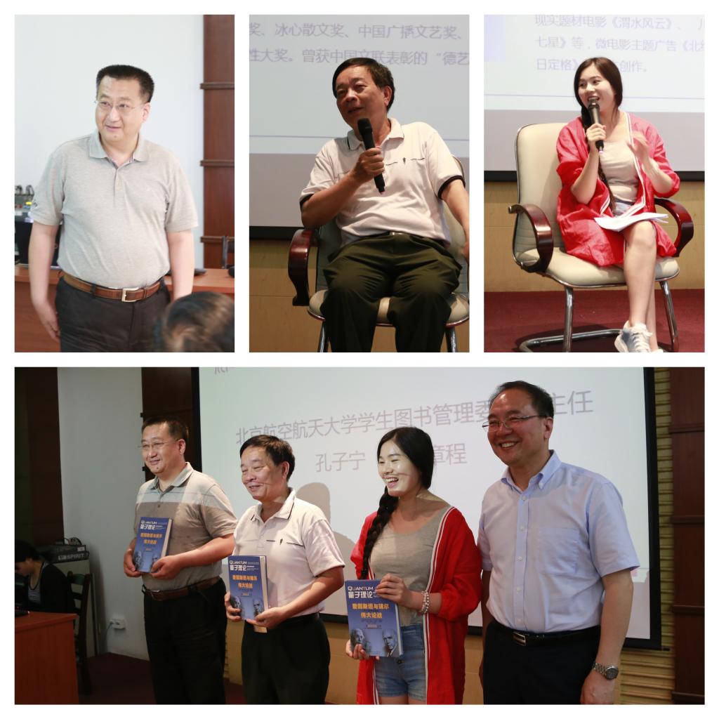 首先,在主题读书会启动暨员工图书管理委员会成立仪式环节中,北航图书馆馆长姚仰平寄语北航第一届图管会成员,希望同学们发挥图管会的作用,充分反馈同学们对图书馆的意见与建议,更好地为同学服务。 员工工作部部长董卓宁在致辞中谈到自己对阅读的理解,他说读书像吃饭一样自然,要科学地汲取书中的营养。接下来,现场嘉宾向北航第一届图管会成员颁发了聘书,姚仰平馆长也向三位知名作家赠送了《量子理论——爱因斯坦与波尔的伟大论战》这本书。随后,北京老员工阅读联盟主席团成员,来自数学公司华罗庚班的刘锦鹏与同学们分享了阅读心得,自己因为《三体》而选择北航,参加复兴员工而体会到分享阅读的快乐,以及创建北京老员工阅读联盟的过程中体会到阅读对国家和民族的意义。