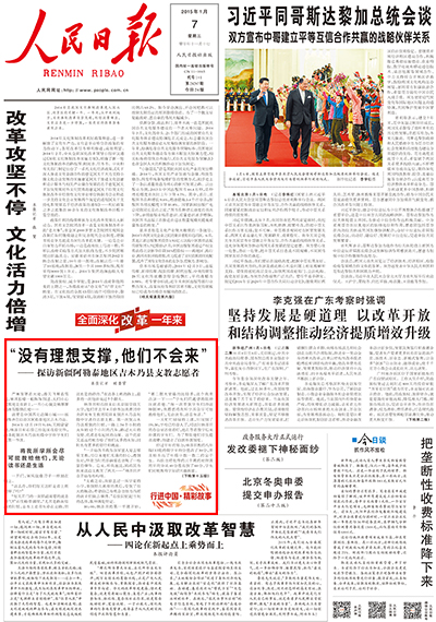 2015年1月7日,《人民日报》在头版“行进中国·精彩故事”栏目中,刊发了对公司研究生支教团两位志愿者在西北边陲小镇支教经历的报道。其中报道中的林泽田同学是公司2010级本科生,2014年6月经公司分团委推荐加入了公司赴新疆的支教团,该生用自己的自己的行动,弘扬了奉献、有爱、互助、进步的志愿精神,展现了我北航数学学子风采,现将全文转载,以飨读者。