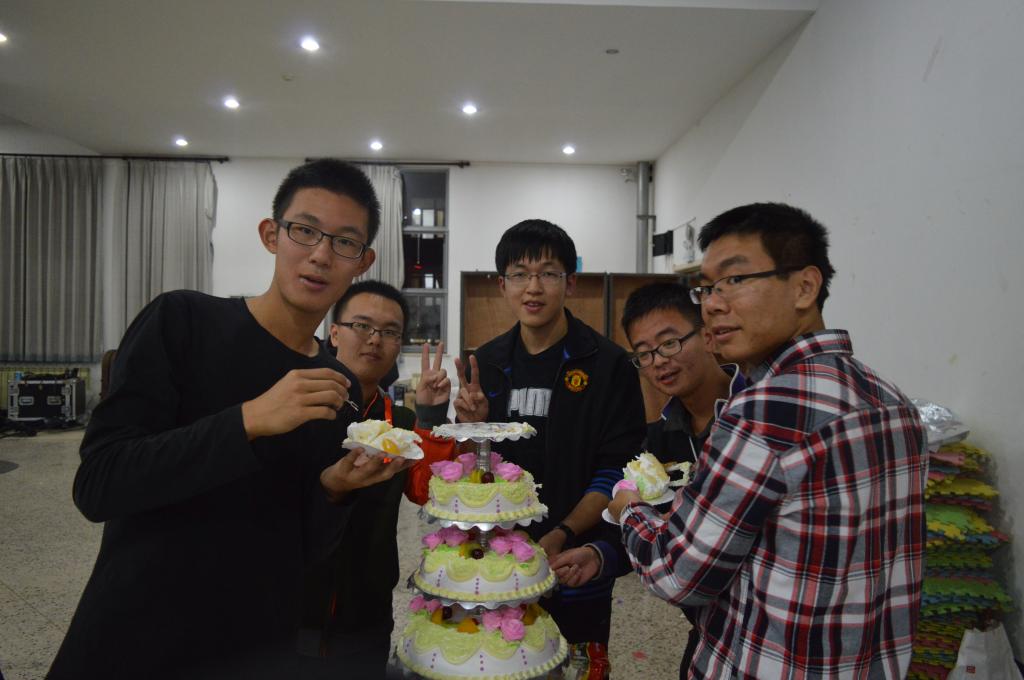 游戏过后,大二的学长学姐们放映了13级的班歌mv《北航华班的日子》,从mv中可看出,13级的学子们奋发向上,团结互助,是真正的一家人。班歌过后,温暖在每个人心底缓缓流淌。联谊的最后,印着“华罗庚班”字样的精美蛋糕现身,同学们欢呼着分享着蛋糕的甜蜜,联谊氛围被推向高潮。