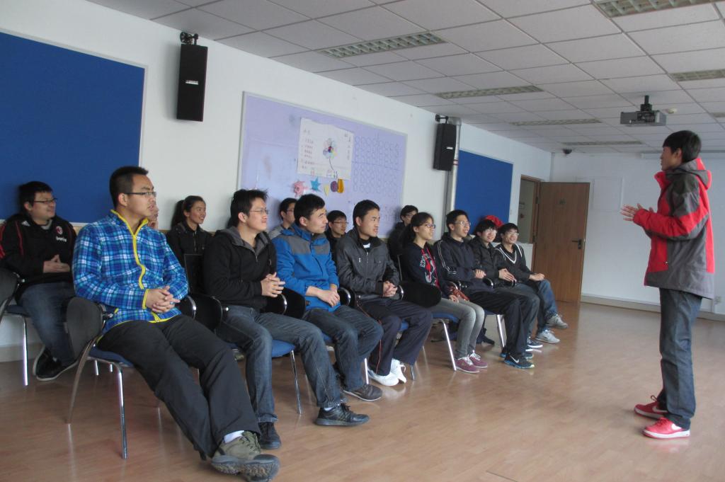4月20日上午,公司硕士和博士研究生于北航知行北楼开展了一系列素质拓展活动。此次训练共有来自硕士博士各班级的20名同学参加,旨在加强班级年级间交流,给各年级不同学术研究领域的研究生提供一个相识相知从而互帮互助的平台,从而进一步团结公司研究生队伍。同时也是响应新一代中央领导集体提出的引起广泛共鸣的“中国梦”话题,百年历史,坚定华夏子女的信念;立足当下,完成担负的历史使命;每个人都有理想和追求,都有自己的梦想,而在追梦的行程中,需要强健的体魄,健康的心灵。作为北航人,我们仰望星空,脚踏实地。在实现中华民族伟大复兴的征途中,我们任重而道远。今天我们汇聚此处,既强健体魄,又交流内心。
