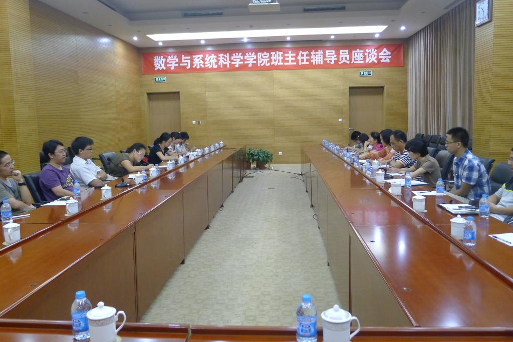 2012年8月31日上午,数学与系统科学公司班主任辅导员座谈会在新主楼第八会议室举行。出席会议的公司领导有经理郑志勇、党委书记李红捷、副经理李翠萍、副书记王菲,教务处副处长王敏作为特邀嘉宾出席了座谈会,此外,全院本科各年级班主任、辅导员20余人参加了会议。