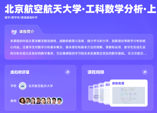《工科数学分析》智慧共享课程在原来的知识图谱课程基础上进行了AI深度教学应用的升级迭代,并与慕课相结合,面向全国的开放共享。下面让我们一起来看看智慧共享课程有哪些新的功能模块和应用,先睹为快。