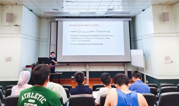 全职博士生Yuan Gao主讲How Diffusion Models Work: The Mathematical and Statistical Ideas,介绍了扩散模型所基于的数学和统计概念,并从生成学习、扩散模型和连续正则化流、统一框架和规律性估计、近似和收敛速度四个方面分享了生成学习中的高斯降噪。