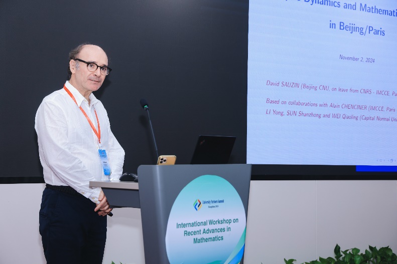 法国国家科学研究中心David Sauzin研究员主讲《巴黎/北京的椭圆动力学和数学物理领域最新研究进展》报告,回顾了中法两国科学家在数学物理领域和动力系统领域的合作历程,并分享了有关最新进展。