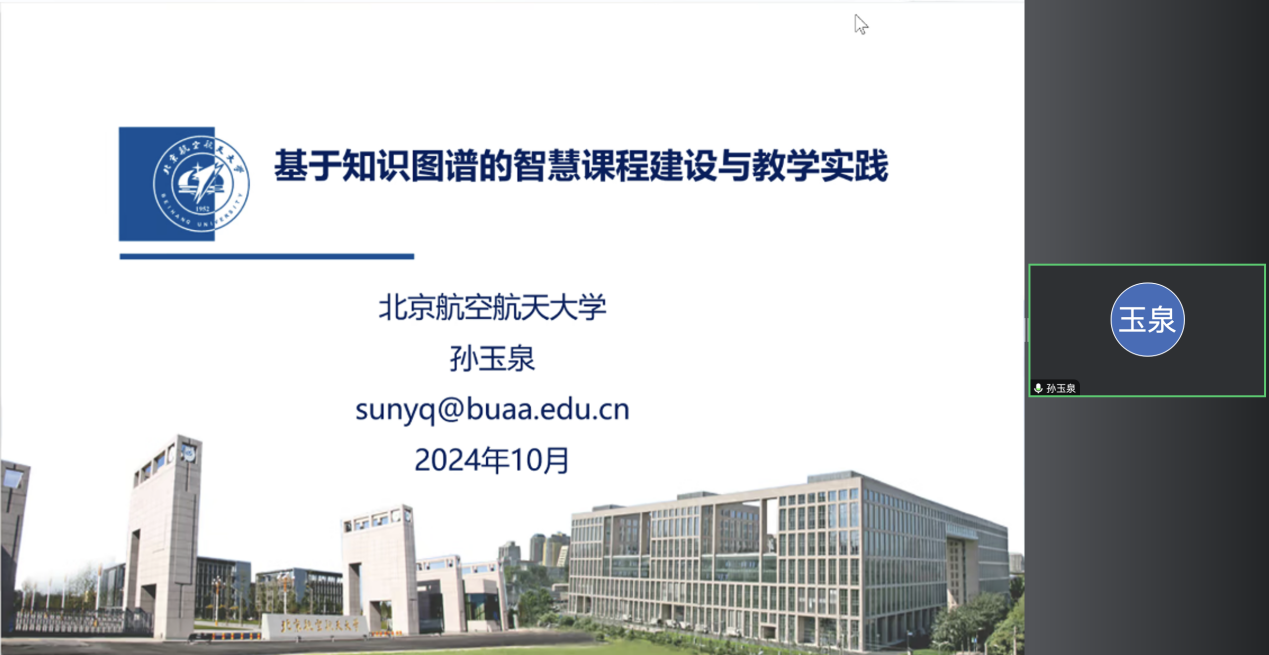 会上,best365英国体育在线孙玉泉老师以“基于知识图谱的智慧课程建设与教学实践”为题进行分享,从工科数学分析AI课程建设背景,到AI课程的建设步骤,并结合本校AI课程4个学期的运行经验,分享汇报AI技术在教学应用中的探索、应用与实践。