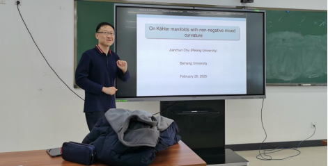 2025年2月20日上午,基础数学系邀请北京大学楚健春研究员作了题为“On Kahler manifolds with non-negative mixed curvature”的学术报告,报告在E404举行,由张世金老师主持。这个报告也是数学公司微分几何讨论班(2025年春季)系列学术报告中的第1讲。