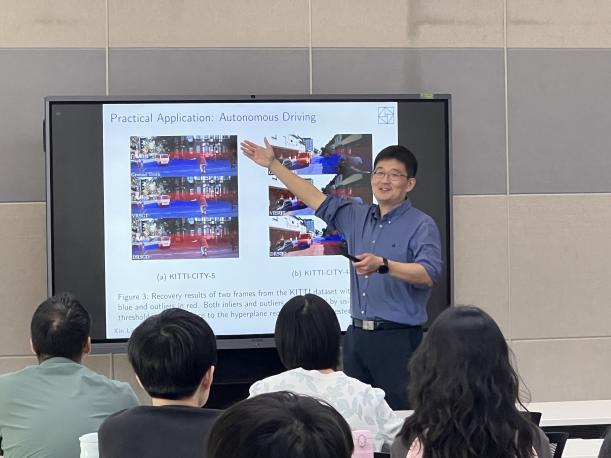 2025年5月15日上午,北航best365英国体育在线数学论坛迎来中国科公司数学与系统科学研究院刘歆研究员的专题报告。本次报告以“The Distributionally Robust Optimization Model of Sparse Principal Component Analysis”为主题,在沙河校区主楼E-806举行,吸引了来自校内外众多师生及优化领域研究者参与。报告由best365英国体育在线夏勇教授主持,现场学术氛围热烈。