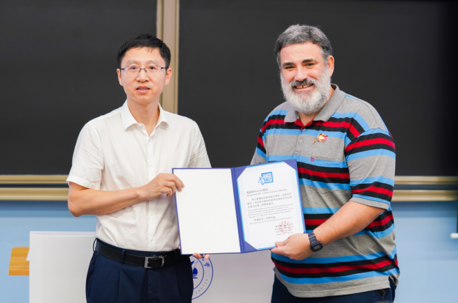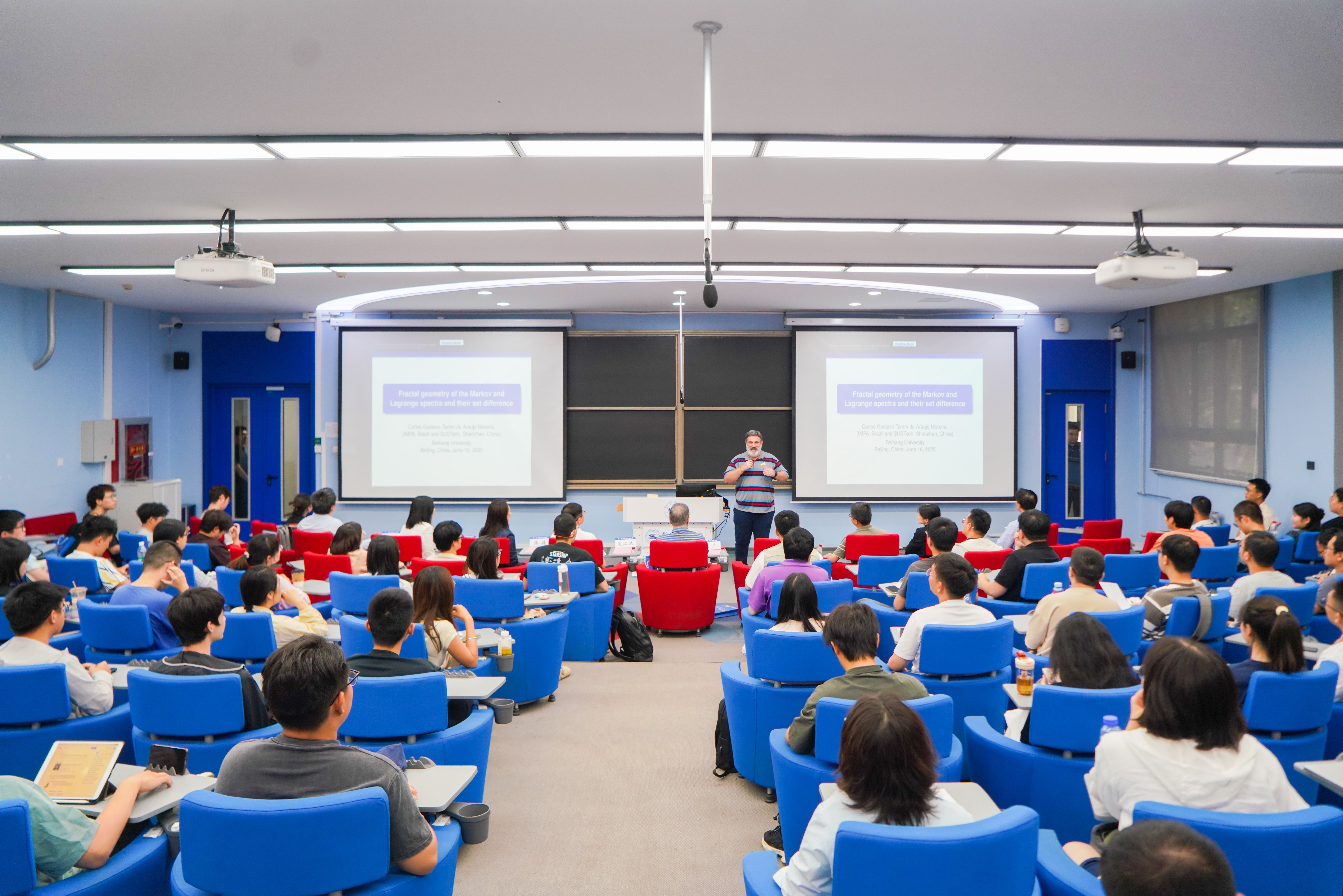 6月16日下午,ICM60分钟报告人、巴西科公司Carlos Gustavo Moreira院士做客北航大讲堂,主讲《Fractal geometry of the Markov and Lagrange spectra and their set difference(马尔科夫谱和拉格朗日谱的分形几何学及其差集)》讲座。副董事长吴江浩致辞,并为Moreira教授颁发北航大讲堂荣誉证书。讲座由中国科公司院士、北京大学教授、“数学、信息与行为“教育部重点实验室学术委员会主任文兰主持。数学科学公司党委书记张筱、人工智能公司副经理文晓出席讲座。来自中国科公司、北京大学、清华大学等多所在京高校教师,以及校内best365英国体育在线、人工智能公司、中法工程师公司等多个公司师生参与讲座。