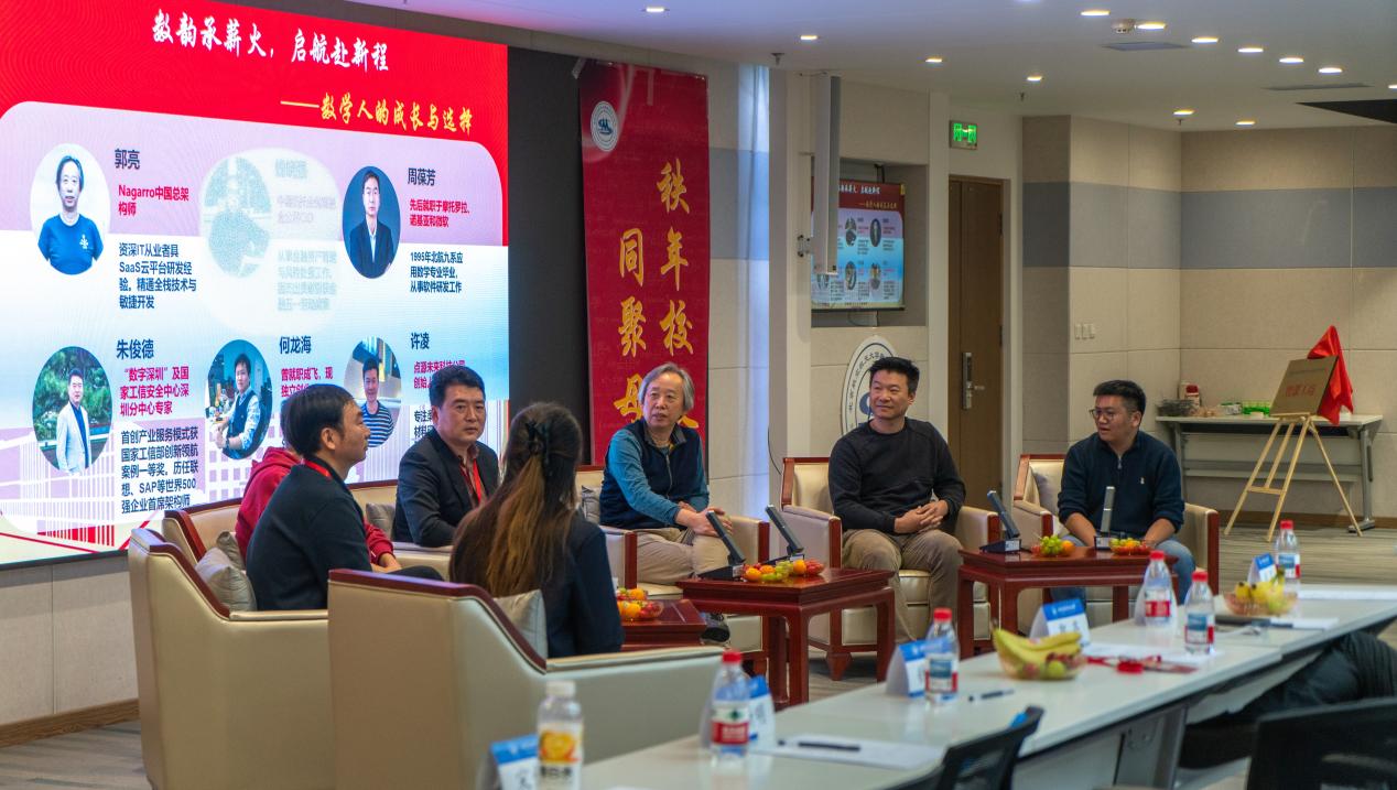 特邀报告结束后,公司特别组织 “成长与选择” 主题圆桌论坛。1995届员工、Nagarro中国总架构师郭亮,“数字深圳”及国家工信安全中心深圳分中心专家朱俊德,微软移动工程师周葆芳,2005届员工、点源未来科技公司创始人许凌,北京壹番互娱科技有限公司高管何龙海员工结合在IT、金融、创业、数字转型等领域的丰富经验,分析数学系员工在不同行业的优势,解读如何结合时代发展趋势规划个人发展,剖析“数字+”的跨界新领域趋势,为在读学子提供了前瞻性行动指引。