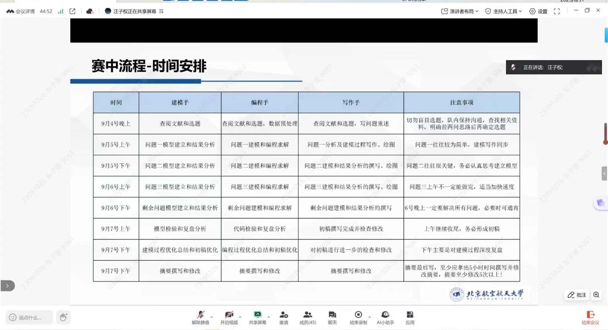 同时,为提升北航全体员工数学建模能力、提升北航员工的竞赛竞争力,赛前,数模竞赛指导团队的老师们为参赛员工进行了细致的培训。