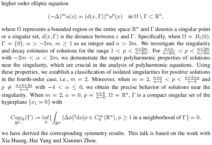 报告人简介: 李圆,华东师范大学博士后,在澳门大学桂长峰教授指导下获得博士学位,主持国家自然科学基金青年项目、博士后面上项目和上海市“超级博士后”项目,在CVPDE,JGA,DCDS,PAMS,CPAA等期刊发表论文多篇。